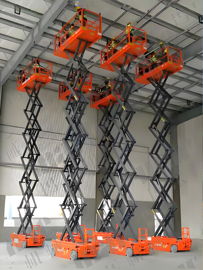 自行式高空作业平台利用直流电瓶动力实现移动、转向和升降,无需借助外力牵引,使用方便灵活,是现代高空作业使用日益广泛的举升设备。尤其适用在厂房、宾馆、体育馆、医院、酒店等需要频繁移动的室内外设备安装、检修及清洁等高空作业场合。除具有剪叉式升降平台的一般特点外,还具有以下优点: